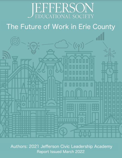 The 2021 JCLA Cohort was tasked with examining the topic of “The Future of Work in Erie County". The goal of this report is to highlight potential synergies between the public and private sectors, suggest meaningful changes to legislation, minimize misconceptions about the area, forecast Fourth Industrial Revolution occupations, and showcase regional assets that local leaders can leverage to increase talent attraction and retention. Please click on LEARN MORE below to read the full report and learn about the five critical areas of Education, Industry, Infrastructure, Placemaking, and Quality of Life addressed in the research.